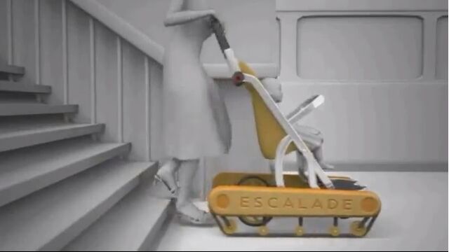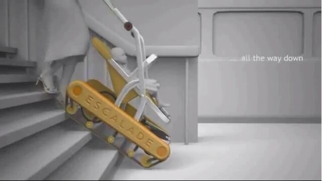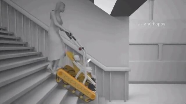 コンセプトの段階っぽいし、下り階段のみの対応っぽいけど、「自動販売機に入れるジュースを運ぶあの機械」のように階段を登ることもできたらなおいいね。