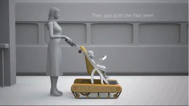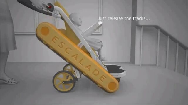 そこで考えだされたのが、通常のタイヤモードのほか、無限軌道モードへと変形するベビーカー、Escalade。
