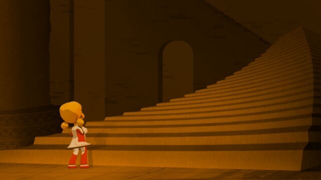 不思議な乗り物に乗ってやってきたらしい少女は、知ってか知らずか神殿の最深部まで辿り着き、獣と対峙してしまうが……。