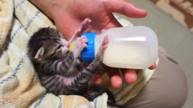 生まれたてから生後4週間まで、子猫の成長を見つめた映像