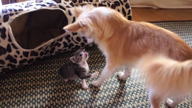 生まれて間もない頃から生後4週間までの子猫の成長を、先輩の猫や犬と共に撮影した映像。