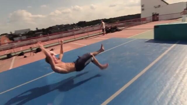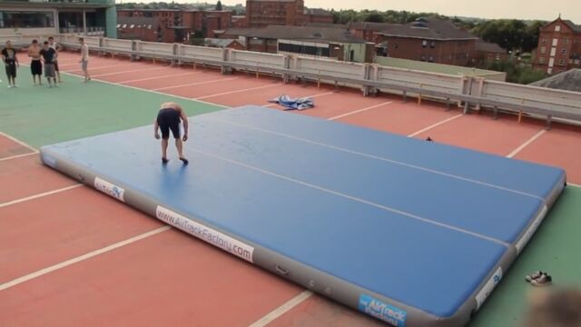 マットを広げて空気を注入すれば、トランポリンのようによく跳ねる弾力あふれるマットに早変わりしちゃう素敵アイテム「エアトリック・マット」を、類まれな身体能力を持つ男、ダミアン・ウォルターズとその仲間たちがテストしてみたアクロバット映像。