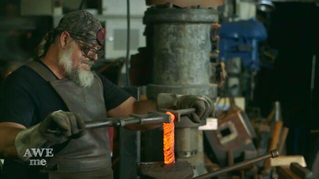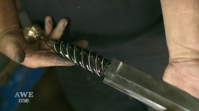 アサシンブレードの刃の部分は、ワイヤーを加工して鍛造したワイヤーダマスカス。
