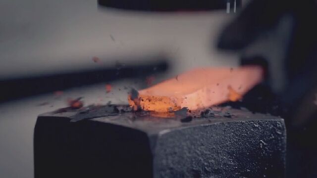 鉄を繰り返し叩いて折る、越後鍛冶職人、日野浦司の鍛地造り