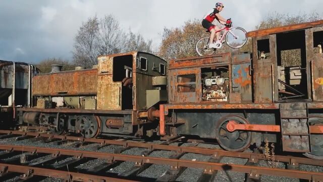 廃線、廃駅、廃列車を跳び渡るDanny MacAskillのバイクトライアル映像