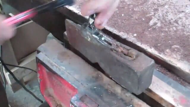 最初の折れた状態が気になる。横に折れているので、車か何かに轢かれたのか?。あと、万力の使い方をどうかしろよ、怪我するぜ。