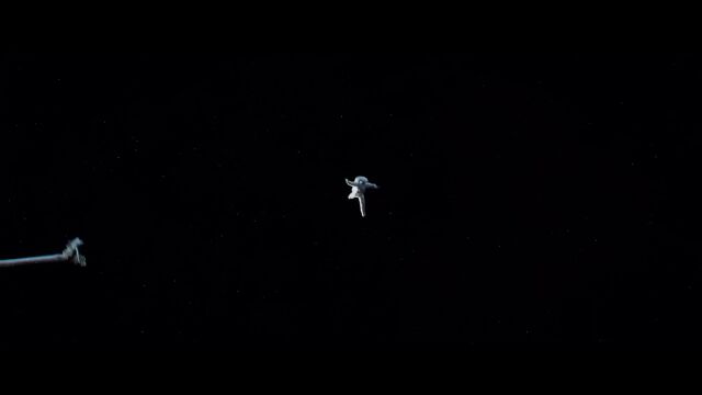 ハッブル宇宙望遠鏡を修理するための船外作業中、スペースデブリの衝突によって事故が発生、宇宙飛行士が宇宙空間に投げ出されてしまって……という映画「ゼロ・グラビティ」のシーン映像。