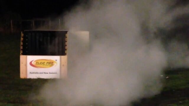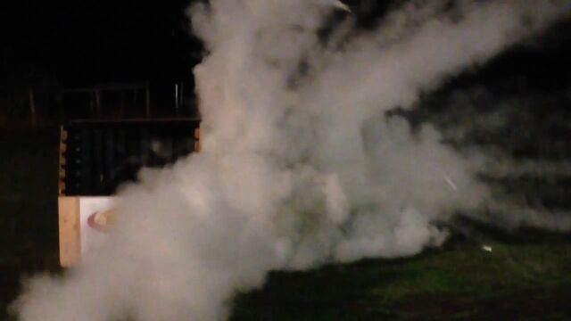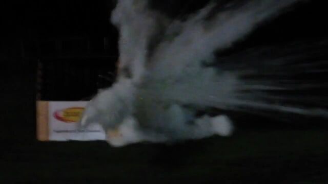 燃えることで効果を発揮する、消火器グレネードのテスト映像。