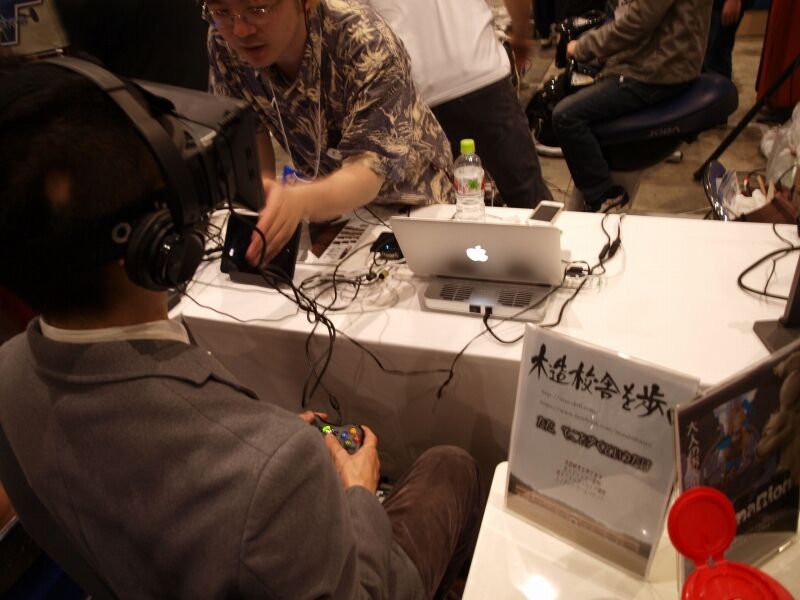 立体ヘッドマウントディスプレイ、オキュラス・リフトの体験コーナー。