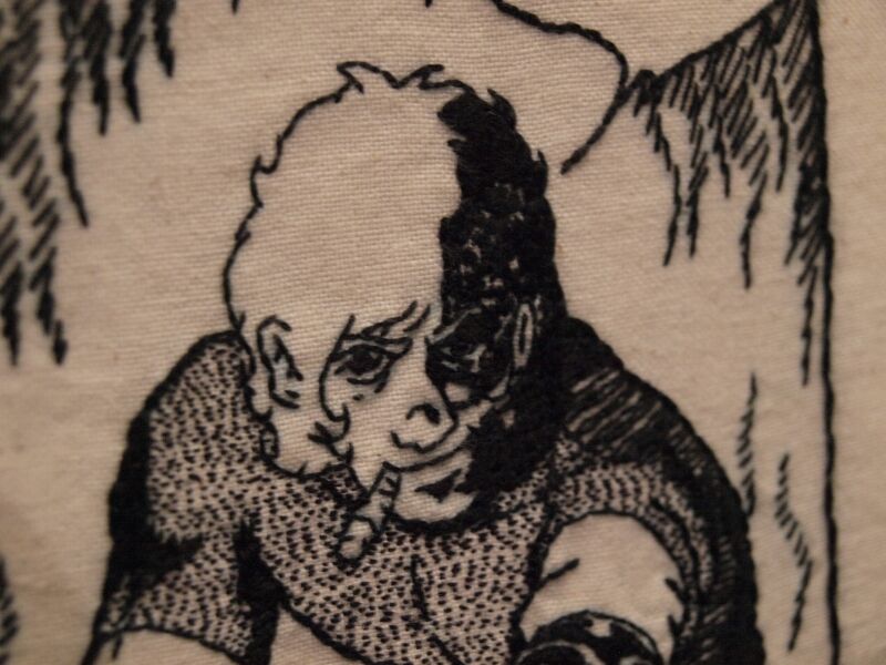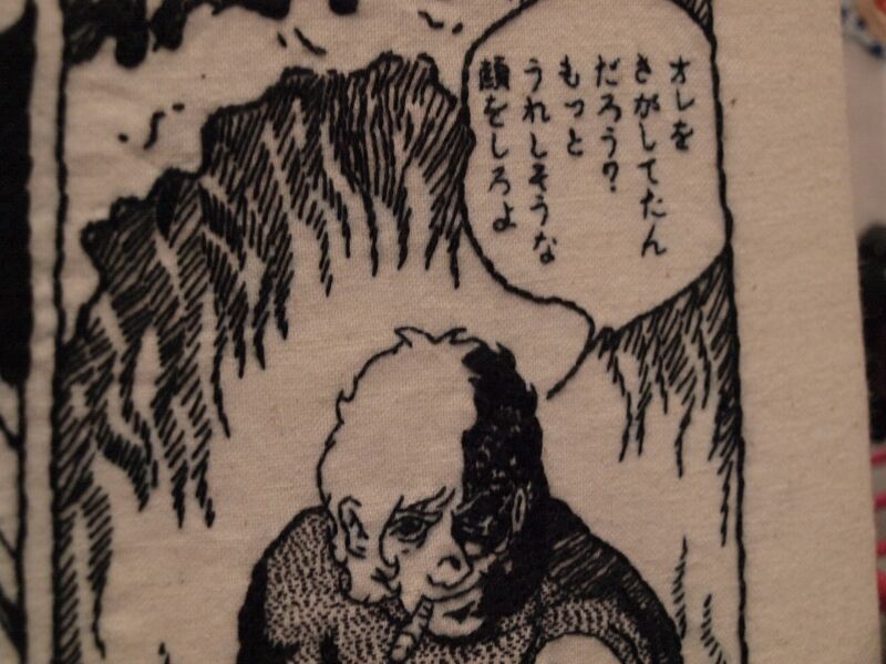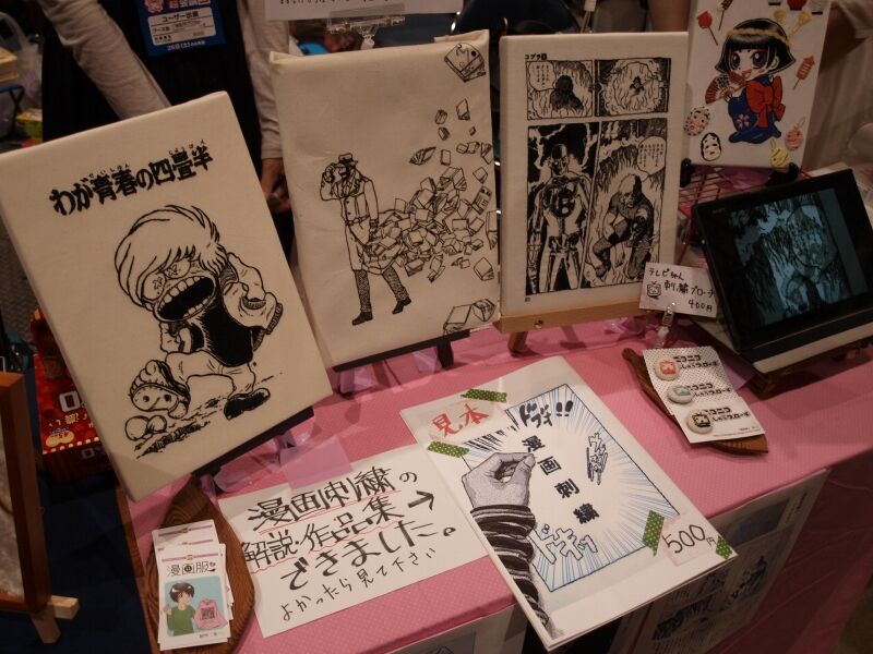 漫画を刺繍で再現する、あーさんによる漫画刺繍のブース。