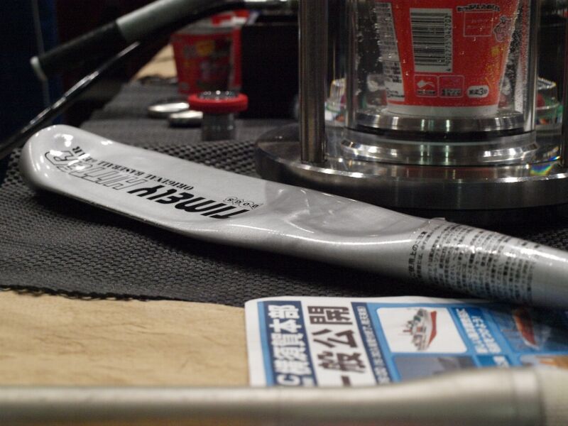 水圧実験でぺちゃんこになった金属バット。凄い。