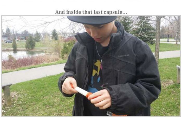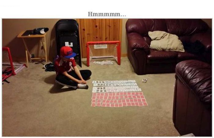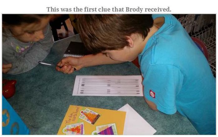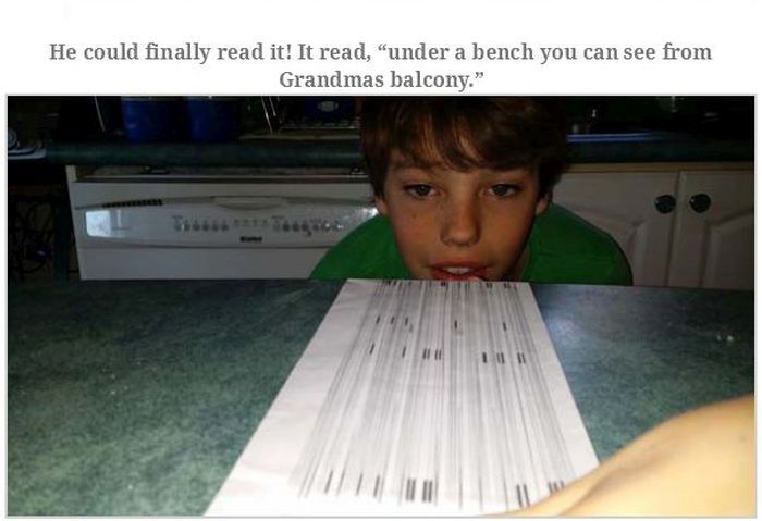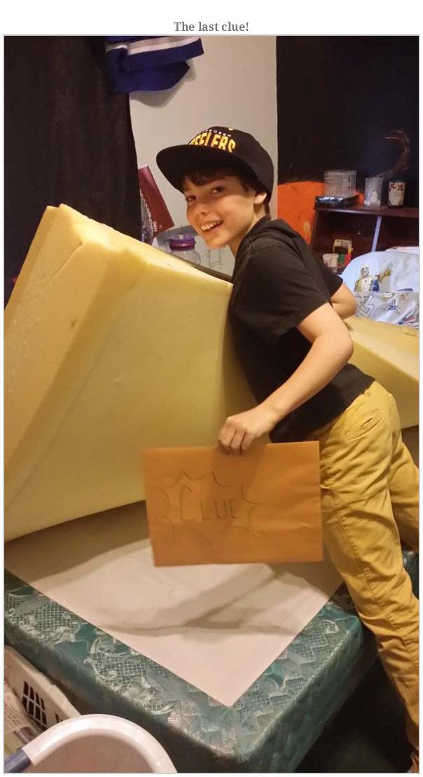 誕生日プレゼントを探す過程そのものを楽しめる、パパが息子に用意したスカベンジャーハント。難易度高めだけど、息子なら大丈夫!って思ってこれくらいのレベルの問題を用意したんだろうね。