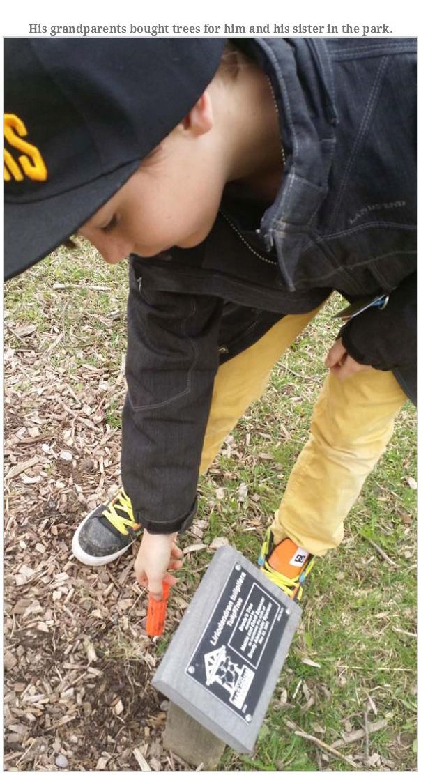 というわけで、おじいちゃんおばあちゃんが植えてくれたユリノキの表示の裏を確認すると……あった!