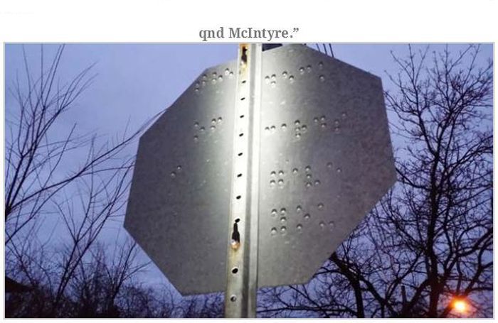 標識の裏を見ると、なにやら不思議な配列の点が。