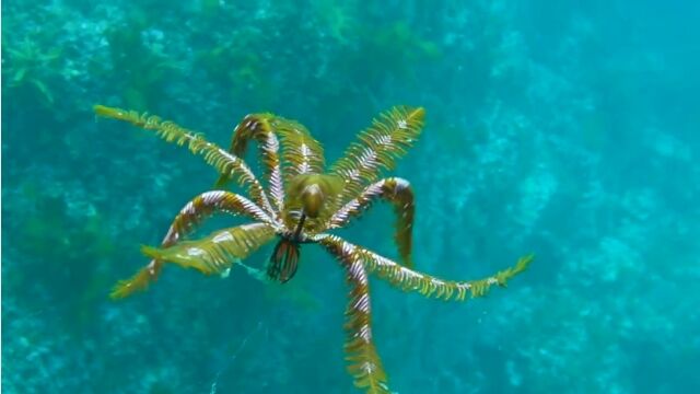 見た目はほとんど水草みたいだけど、葉っぱのような腕を器用に動かして、水中を自由に泳ぐことができる動物。