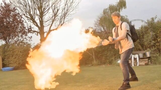 圧縮空気で飛び出すアダマンチウムクローに、磁力で天井を歩けるマグニートーシューズを自作したコリン・ファーズさんが、新たに現実のものとしたミュータントパワーは、パイロの火炎放射能力。