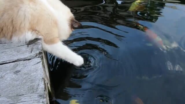 猫は普通魚を食べますが、画像の猫(ラグドールと書いていますが、雑種と他の猫の可能性あります。)は鯉と遊んでいるように見えました。