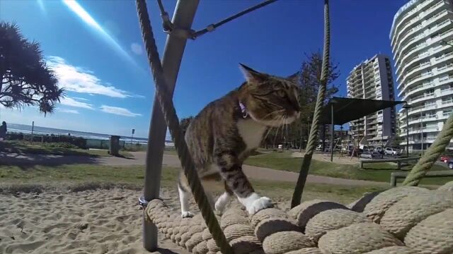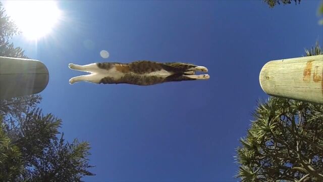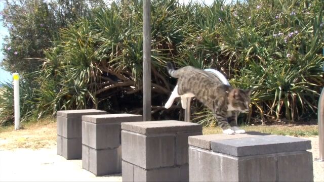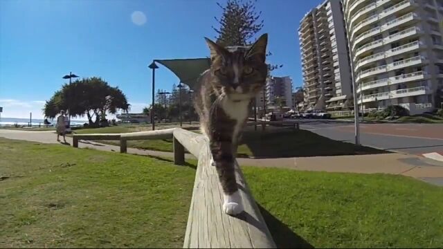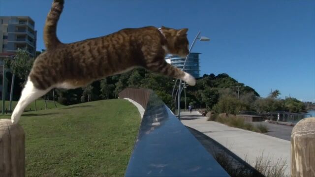 猫が駆け抜け、猫が飛び跳ねる様子を格好良く撮影した猫のパルクール映像。
