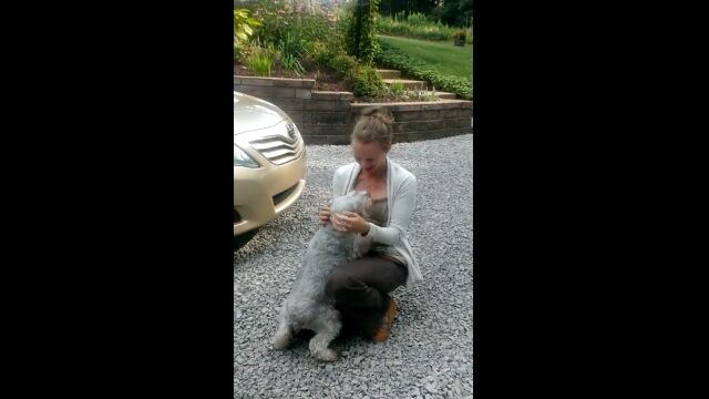 2年ほど実家を離れていた飼い主のお姉さん。彼女が実家にやってくると、悲鳴のようなものすごい鳴き声で出迎える犬。