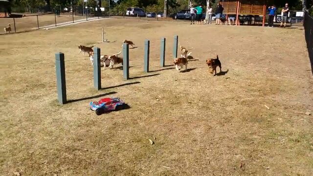 ドッグパークでラジコンカーを走らせるのって凄く楽しそう
