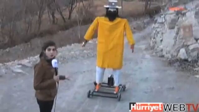 作物を荒らすクマをどうにか追いやることができないかと、トルコの農家が本気出して作ったロボット案山子。