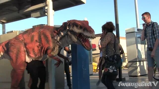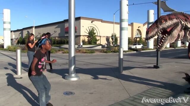 アメリカ、カリフォルニア州南部のコンプトンは、アメリカで最も犯罪率が高い都市の一つ。ギャングによる犯罪も多いこの街のストリートを、二足歩行の肉食恐竜が闊歩するドッキリ映像。