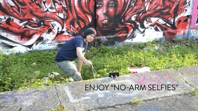 6. 自作のスマホ固定台と純正イヤホンで簡単自撮り