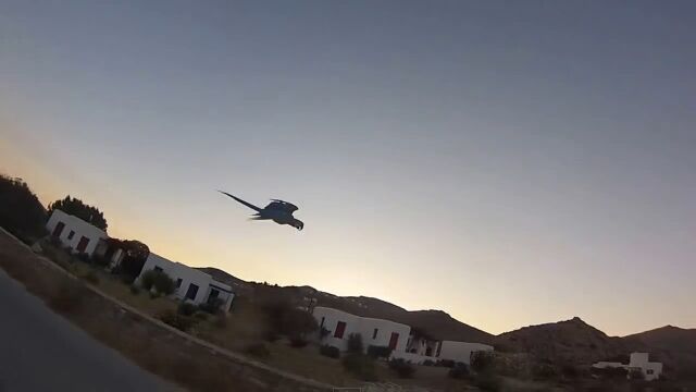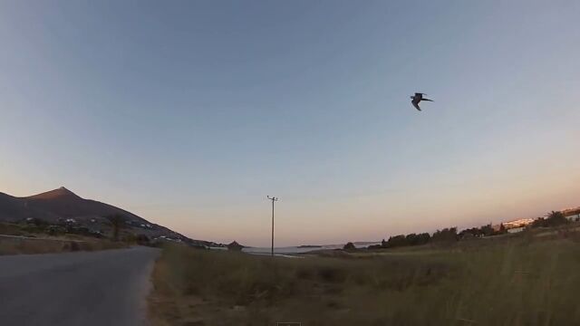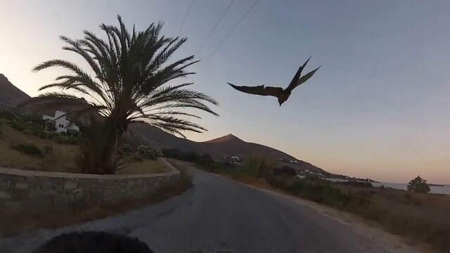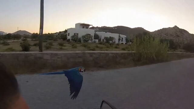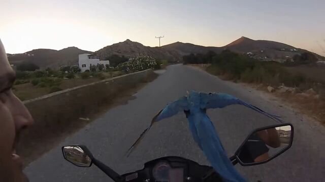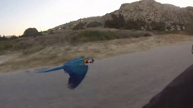 空飛ぶインコと一緒にお散歩!バイクで並走する映像が楽しい