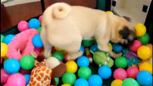Pug goes crazy in his first ball pit!