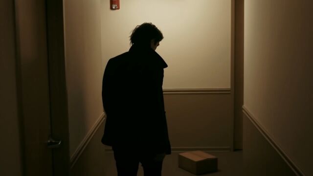 カメラマンの男がスタジオに帰ってくると、ドアの前に差出人不明の宅配物が置かれている。