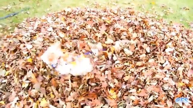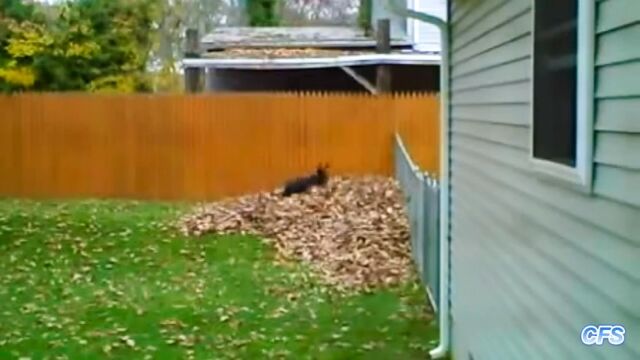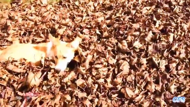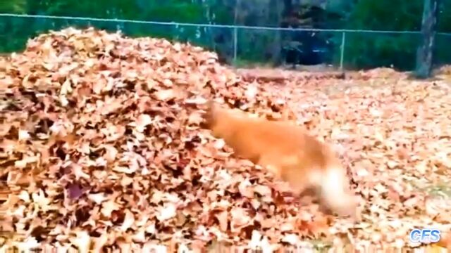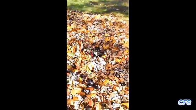 集めた山にした落ち葉に突っ込み、大はしゃぎしまくる犬たちの映像集。