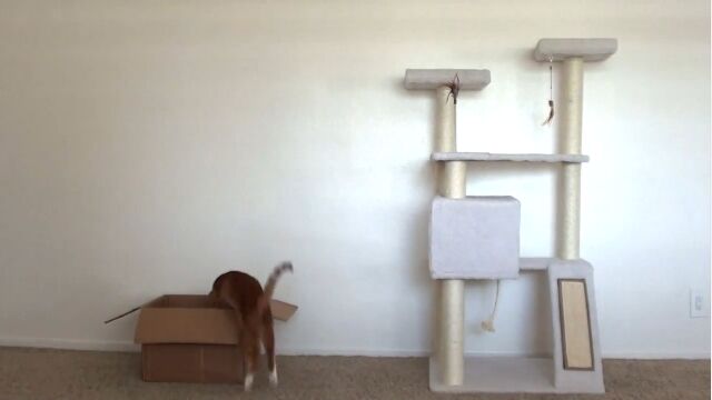 せっかく買ってきたキャットタワーには登らず、段ボール箱に入ってしまう。猫用のオモチャに興味を示さず、どうでもいい小物(足の指に挟むリラックス商品とか)で楽しそうに遊ぶ。撫でて欲しそうな体勢だったからナデナデしていたら、ナデナデがしつこいとばかりに攻撃してくる。