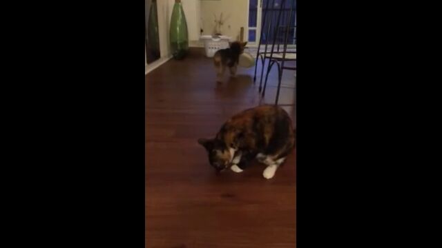 しかし、ふたたび猫が近づいてきて、お皿の中からエサを食べようとした瞬間……。