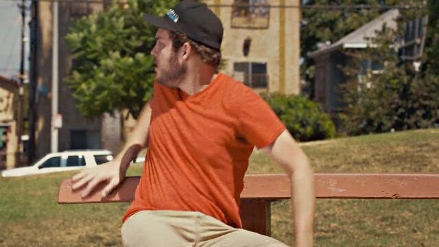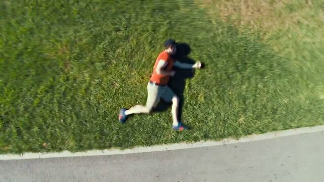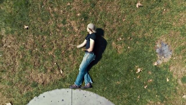 地面を背景にして上から撮影した、パルクール風のストップモーション・アニメーション。