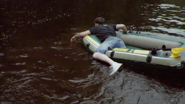 イングランド、チャーツィーにある大人向け遊園地ソープ・パークに、ゴムボートを使って無断で侵入した2人組の男。