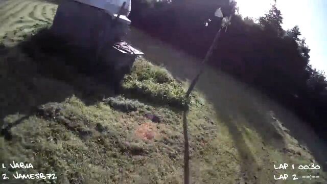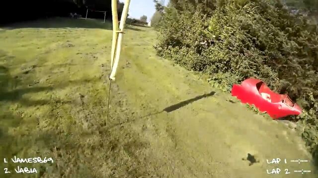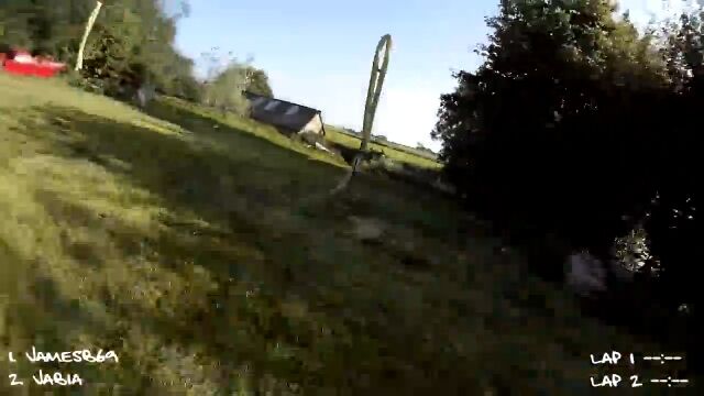 2台の小型クアッドコプターにカメラを搭載し、クアッドコプターからの視点で庭に手作りしたコースを飛ぶ迫力あふれる映像。