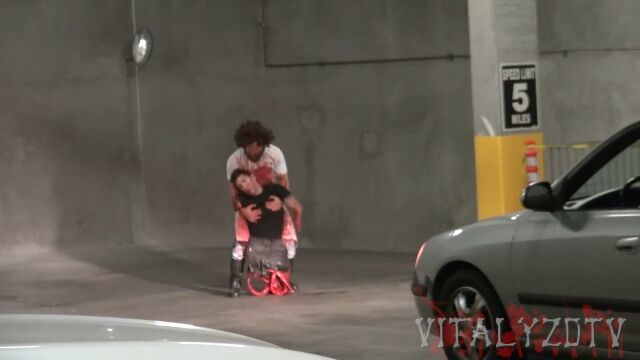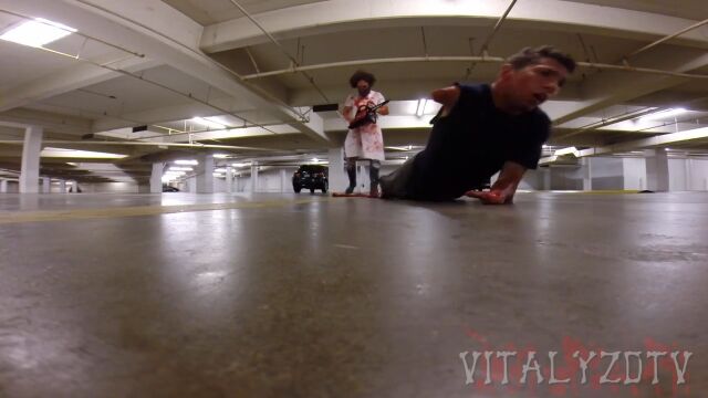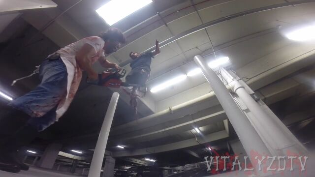 地下駐車場を訪れた人々が目撃するのは、下半身をチェーンソーで切られ、内臓をひきずりながら助けを求める男や、唸りを上げるチェーンソーを振り回す殺人鬼。あるいは、殺人鬼が犠牲者を解体したりひきずっている様子など。