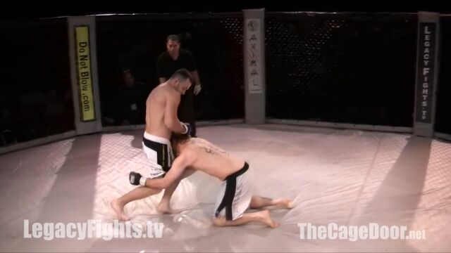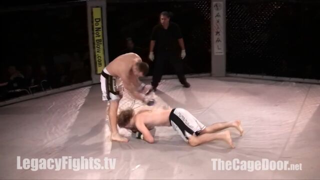 金網に囲まれたリングの中で戦う総合格闘技にて、あっという間に勝負が付いたK.O.シーンの映像。
