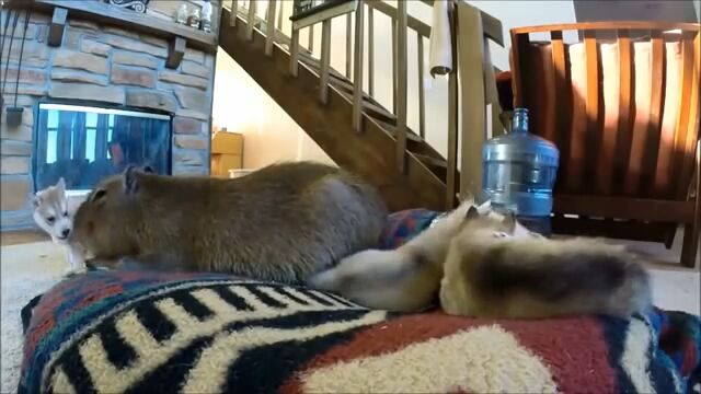 カピバラは乗り物!?リスザルたちとカピバラたちが不思議と仲良しな感じ