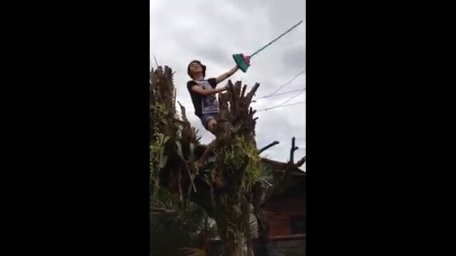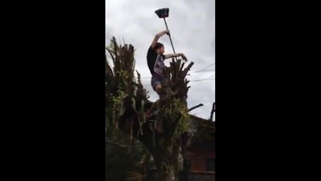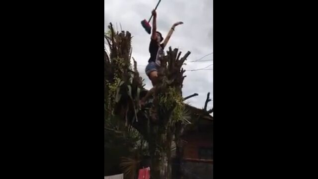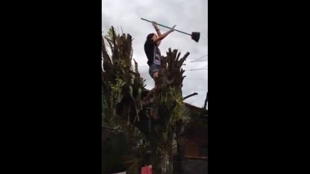 でも、木の周囲にあるものと、ホウキの種類、歌いながらの行動によってはとてつもない危険が振りかかるかもしれないという映像。