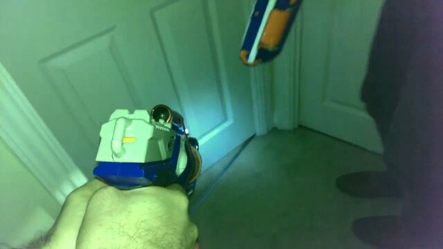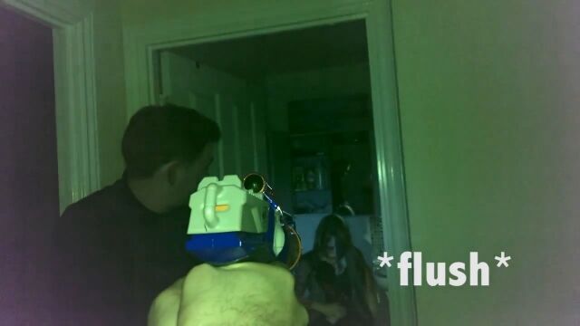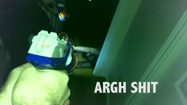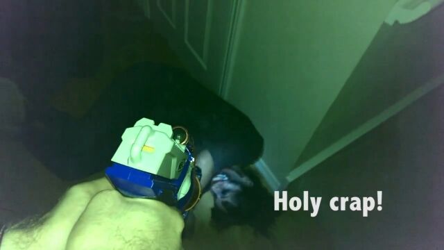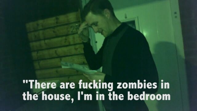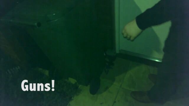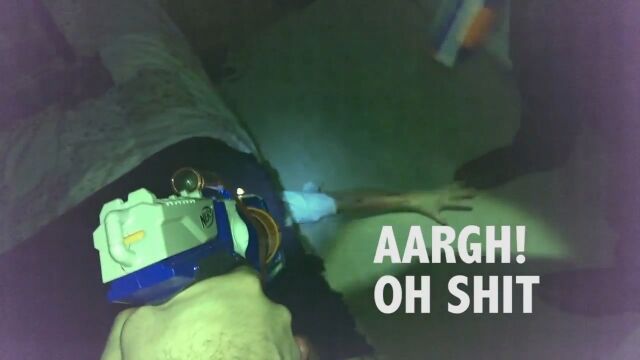 寝室で助けを待つ奥さんを救うため、玩具の銃を手に、友人と一緒に、ゾンビだらけの家の中へと突入していく。