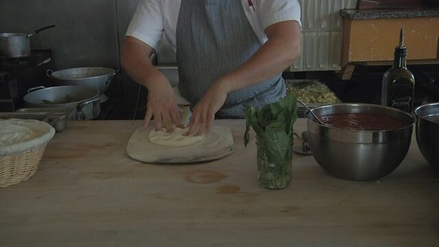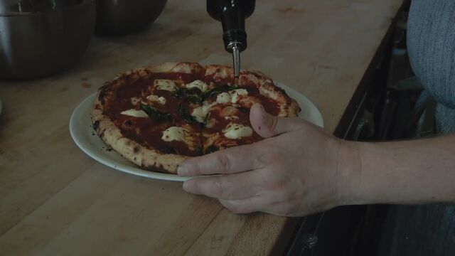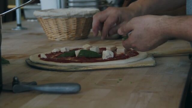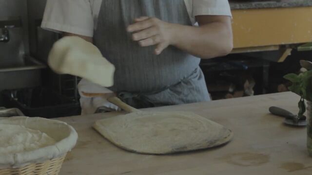 アメリカ、カリフォルニア州サンタ・クルーズのレストラン、バンタムレストランのシェフによる、ピザ作りを紹介した映像。