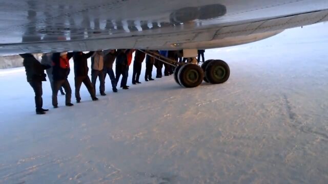 飛行機のタイヤが凍りついて地面とくっついてしまい、イガルカ発クラスノヤルスク行きのフライトがキャンセルされそうな事態に。