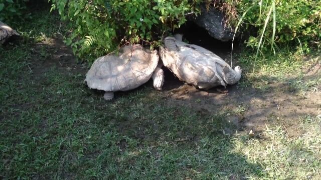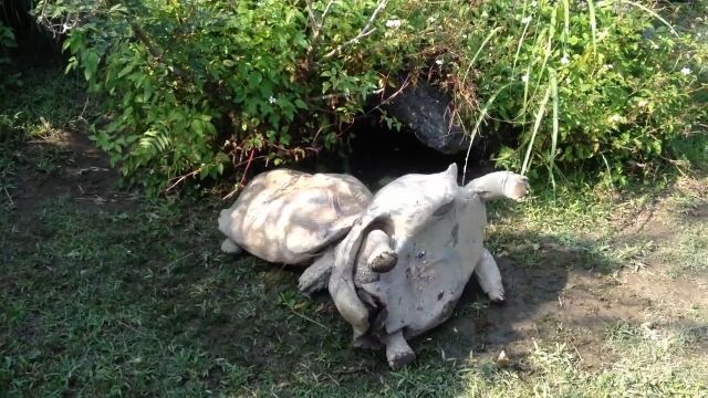 体の大きさや重量、甲羅の形状、地形にもよるものの、これだけの大きさの亀だと一度ひっくり返ると自力では起き上がれないこともある。
