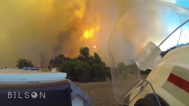 2015年1月2日、オーストラリア南部のビクトリア州で発生した火災の消火活動を、ボランティア消防士のベン・ウィルソンが撮影した消防士視点の映像。