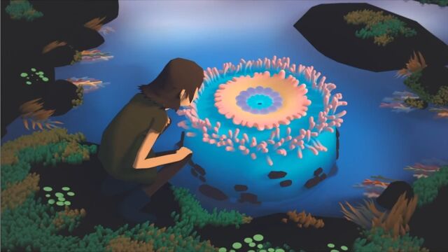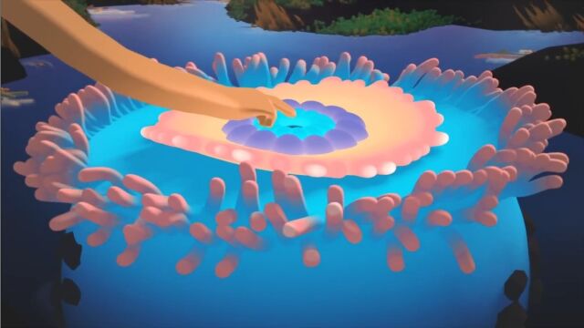 まるで海の底を歩いているような不思議な場所を歩く男が、巨大イソギンチャクに触れたことから生じる体の異変。