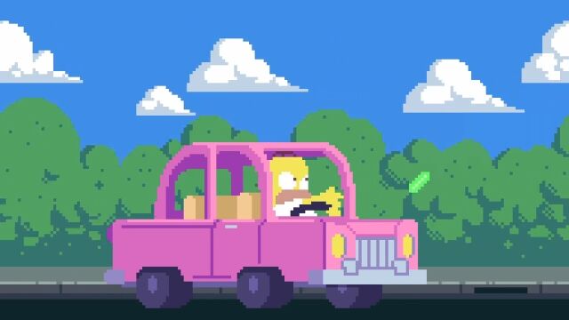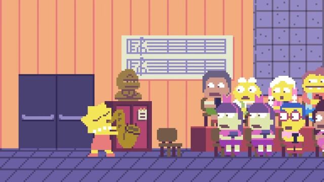 シンプソン一家が各所から家に集まり、テレビのあるリビングのソファーに座る「ザ・シンプソンズ」のオープニングシーンをドット絵で表現したアニメーション作品。