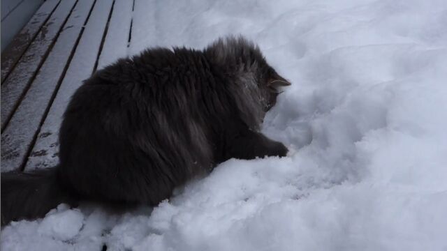 雪が降ったらこたつで丸くなってなんかいられない!雪が大好きな猫のナラちゃんは、バルコニーに飛び出して雪に埋もれ、雪をかき、飼い主が投げてくれる雪にじゃれついて大満足のご様子。