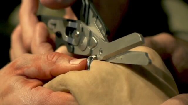 「Raptor」はステンレス鋼の医療バサミ、ストラップカッター、リングカッター、定規、酸素タンク用レンチ、ガラスブレーカーの6つの機能がひとつになった、折りたたみ式の医療バサミ。