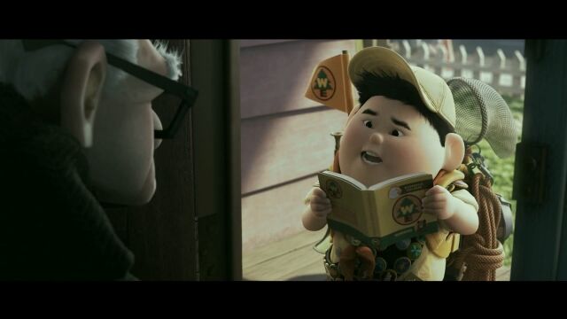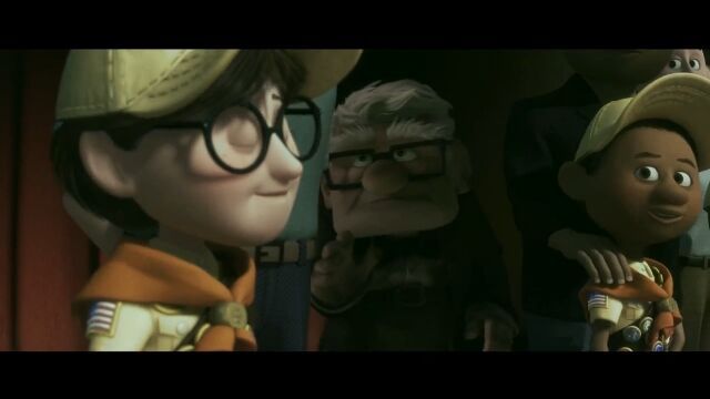 ラッセルのボーイスカウトのバッヂ授賞式に家族じゃないのに現れるカールじいさん、怪しげな黒服の男たち、ロープで縛られたラッセル、猟銃で玄関扉を破壊しようとするマンツ。